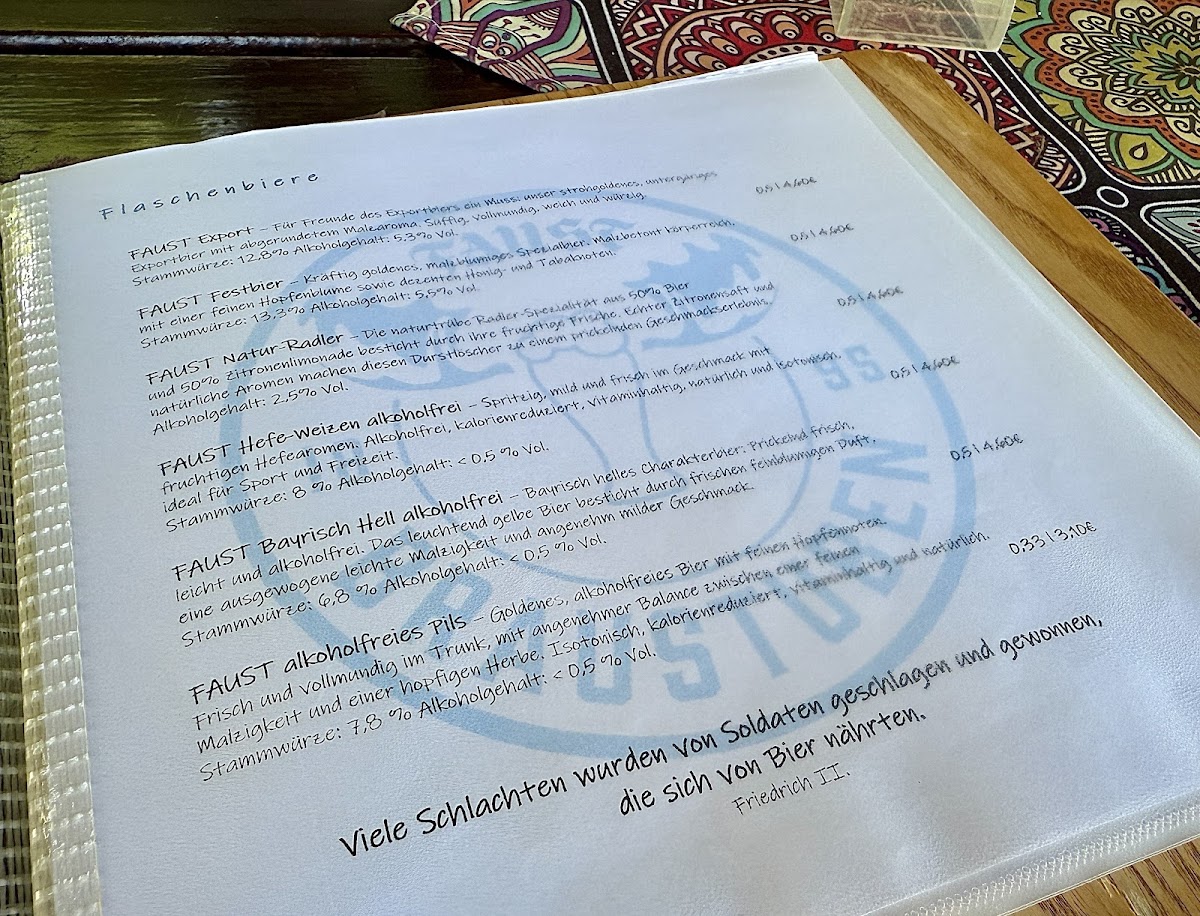 Whether you're enjoying a refreshing Faust beer outdoors in the biergarten or inside in the cozy lounge, expect a delightful culinary journey that embodies the spirit of local tradition and hospitality. Reservations are recommended, especially on weekends when the brewery offers tours.